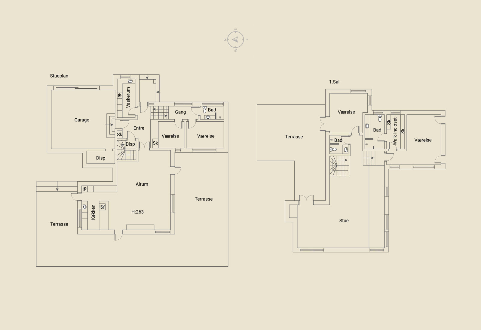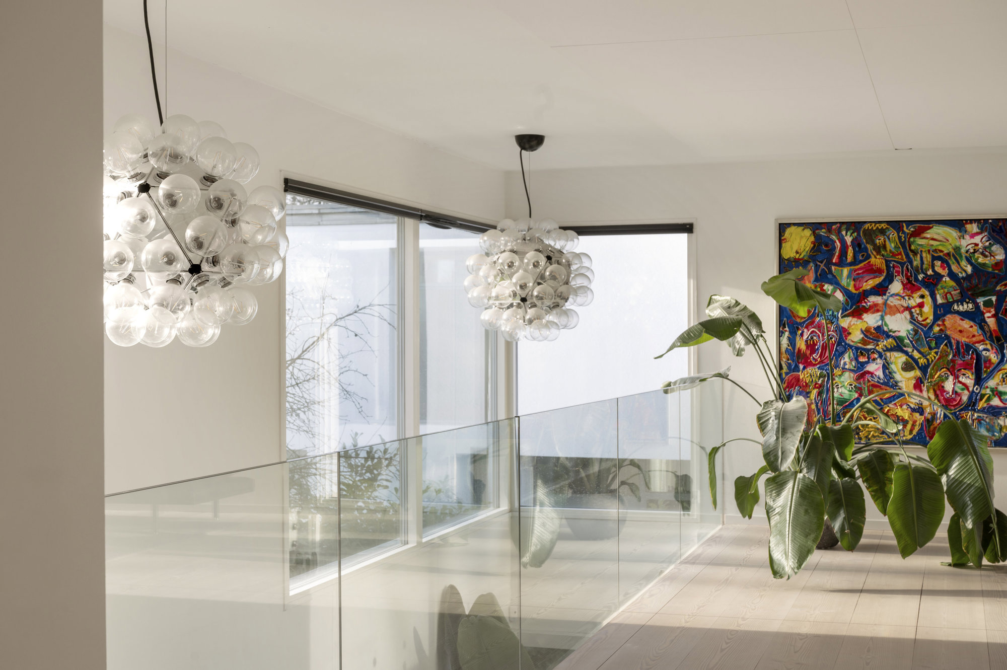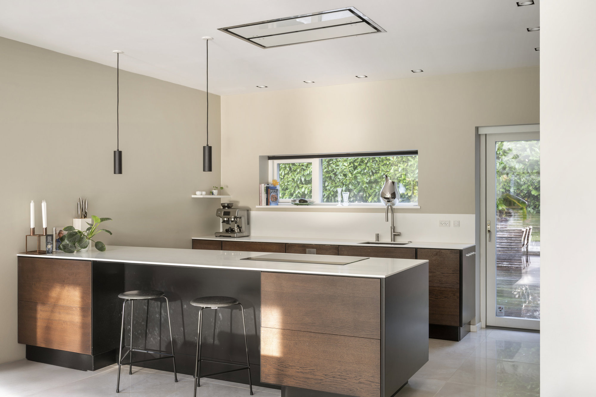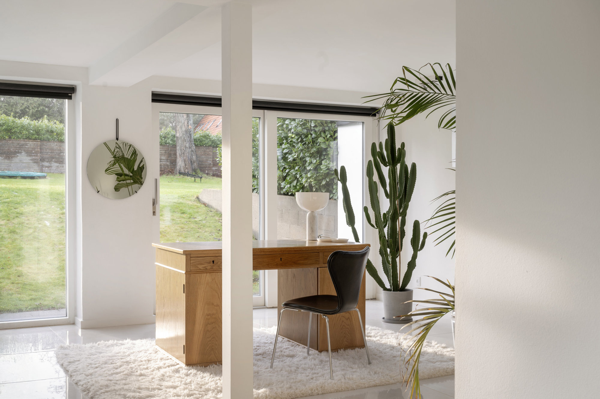 Hele huset er kendetegnet af rene linjer, store rum og markante lysindfald gennem de forskudte niveauer. Teknikken er integreret og giver diskret luksus: ventilation med varmegenvinding, app-styring af energi, gardiner, port og overvågning samt indbyggede højttalere, der følger arkitekturen snarere end overdøver den. Den store grund vender stik syd, og haven byder ud over flere store terrasser på masser af modne frugttræer, der giver privatliv, karakter og rytme gennem året.