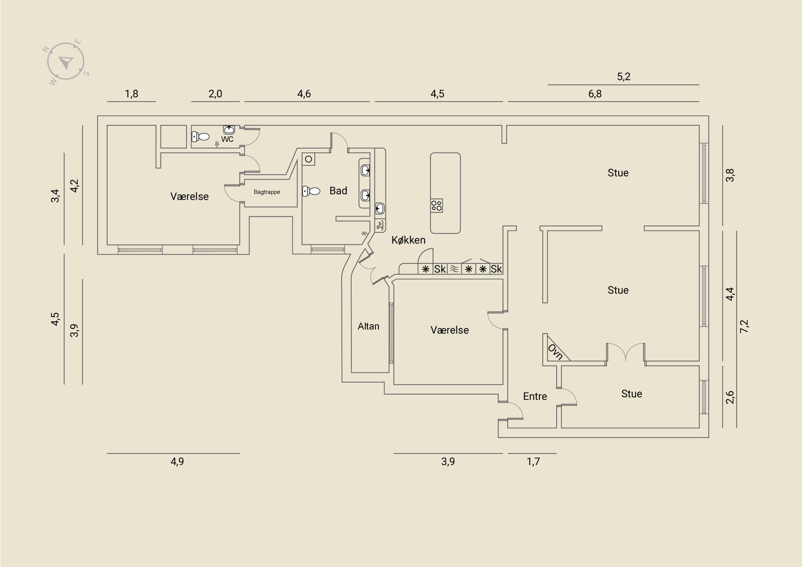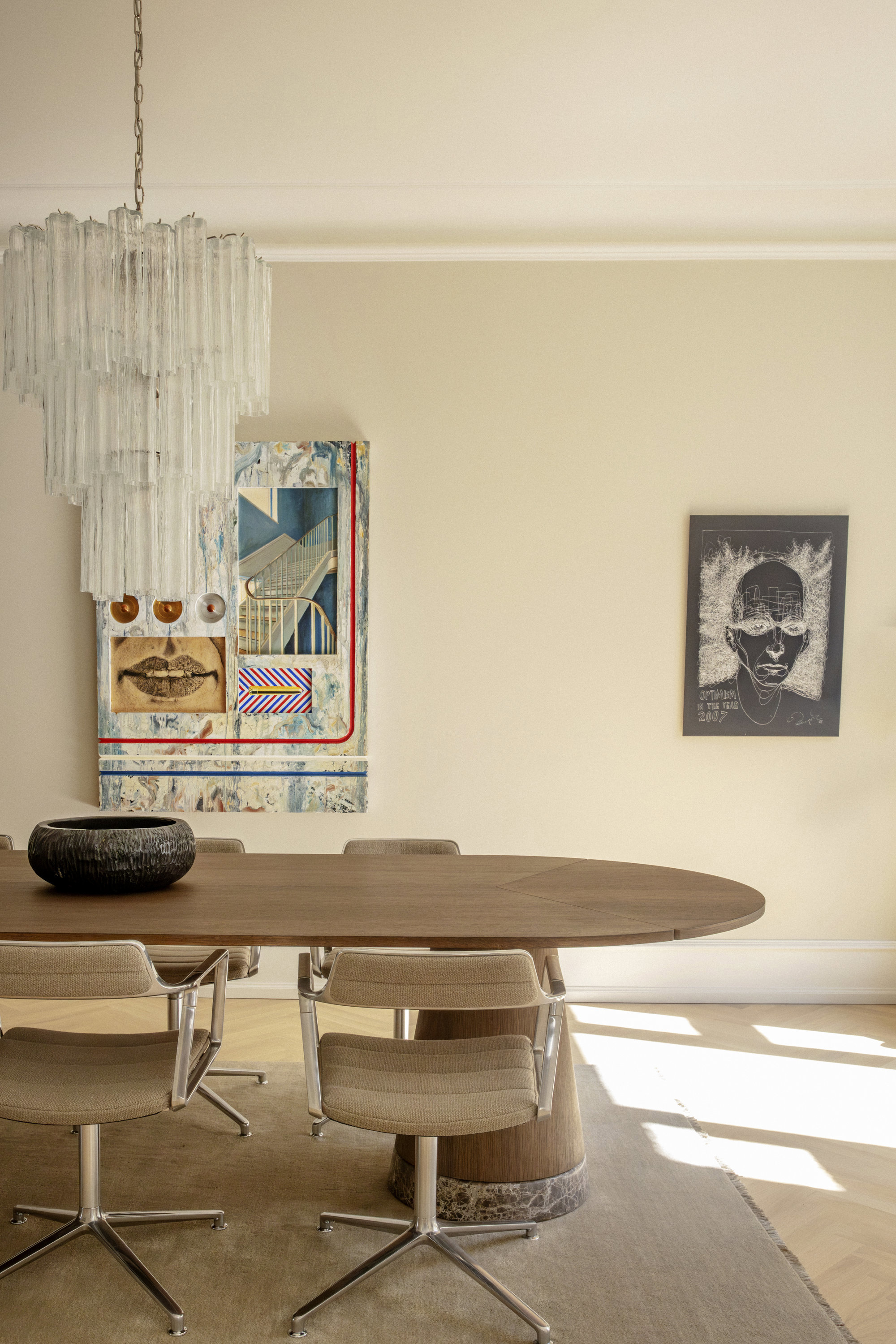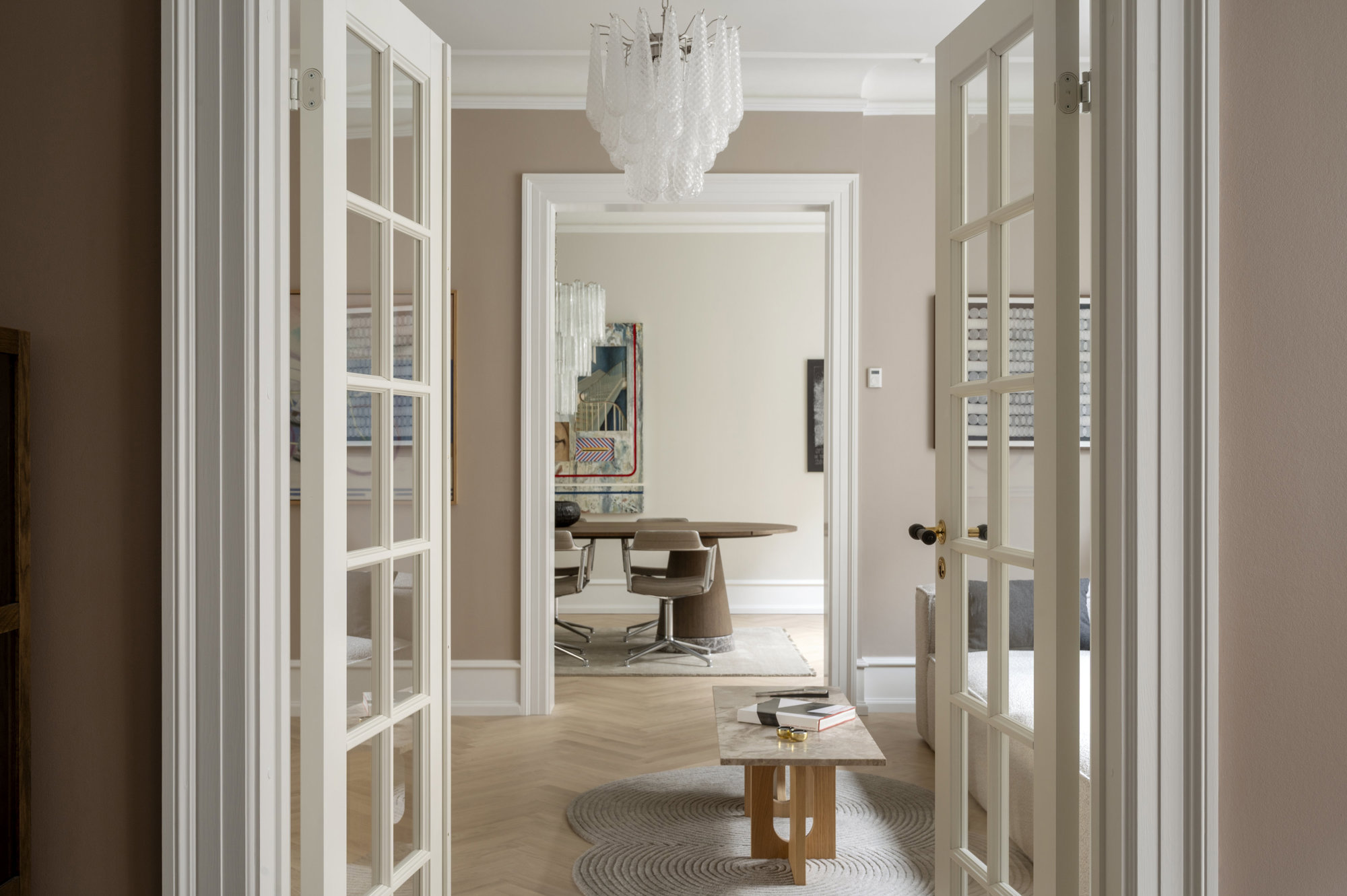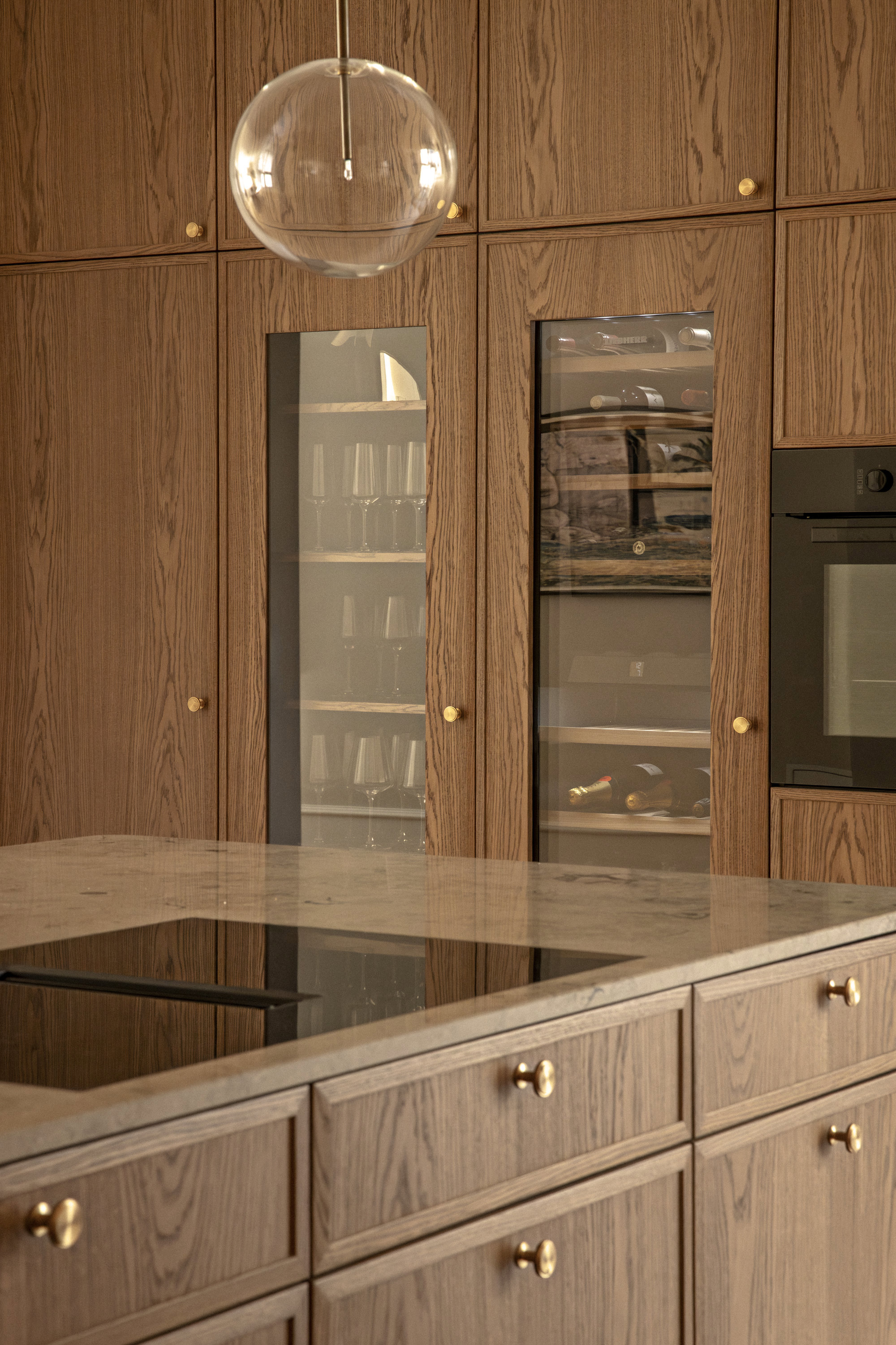 På første sal – ejendommens beletage, der ofte var forbeholdt bygherren – breder en herskabslejlighed sig over 194 kvadratmeter. Her er himmelhøjt til loftet, og hver en flade er restaureret med respekt for arkitekturen og en klar forståelse for, hvad der klæder en bolig fra 1893. Køkken-alrummet er lejlighedens nerve, det er stort og åbent med udgang til altan, og de tre stuer ligger en suite, som de skal. Rum, der kan forbindes eller adskilles efter behov. Her er volumen og fleksibilitet. Plads til hverdagen og det, der bryder den. Derudover rummer boligen to store værelser, hvoraf det ene har separat indgang fra bagtrappen – ideelt til teenagere med sene sengetider. En detalje fra en tid med herskab og tjenestefolk, der i dag viser sig overraskende anvendelig. Materialerne – eg, marmor, ubehandlet messing – er valgt med omtanke og uden kompromiser. Og ser også smukt ud om 50 år.